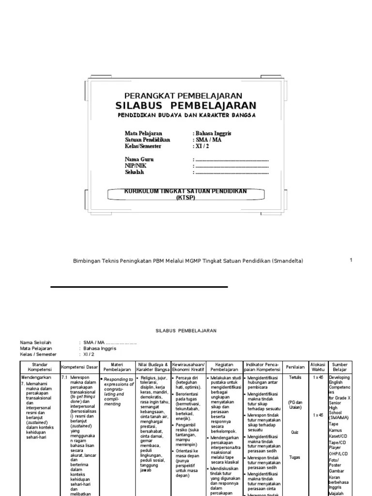 Silabus bahasa inggris smk x. Pada kesempatan kali ini kami akan memberikan silabus bahasa inggris kurikulum 2013 untuk sma kelas 10 11 dan 12 lengkap yang bisa . Pada kesempatan kali ini kami akan memberikan silabus bahasa inggris kurikulum 2013 untuk sma kelas 10, 11, dan 12 lengkap yang bisa di download secara gratis. Silabus adalah rencana pembelajaran pada suatu kelompok mata pelajaran/tema tertentu yang mencakup standar kompetensi , kompetensi dasar, . Silabus merupakan dokumen yang perinciannya .